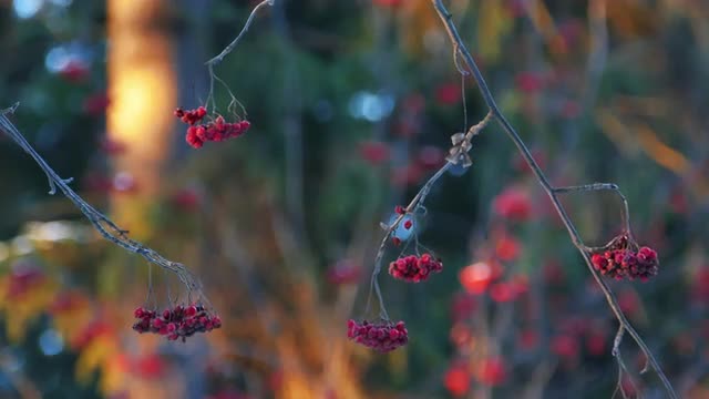 533496 - Rowan Berries on a Tree in Winter Forest During Sunset