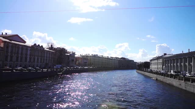 Sun Rays Are Reflected in Fontanka River Water Surface in Spring Day, St. Petersburg, Russia