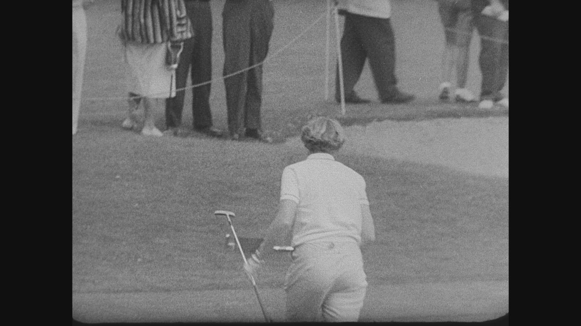 > 1963: Women golfer tee driver markers warm tropical day.
