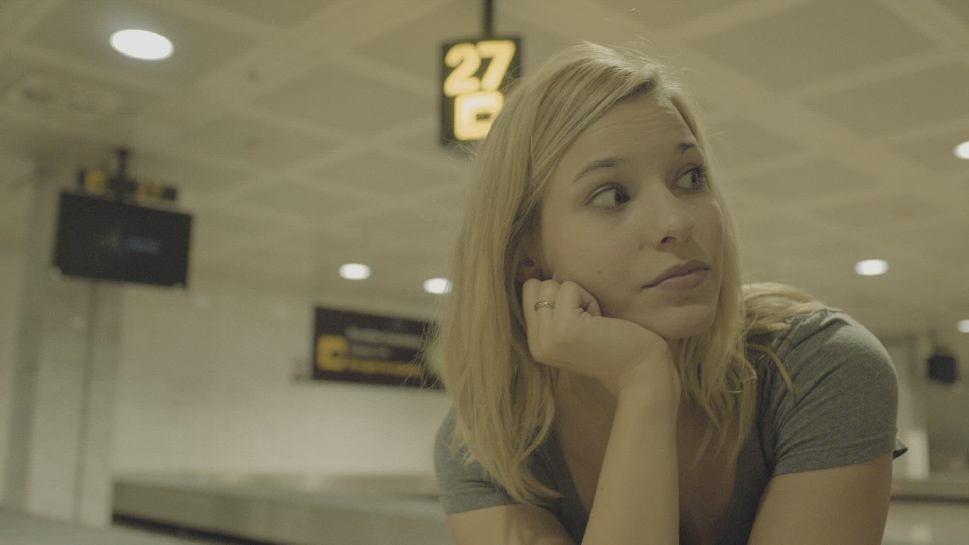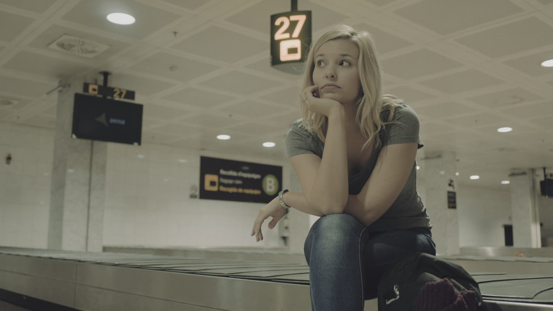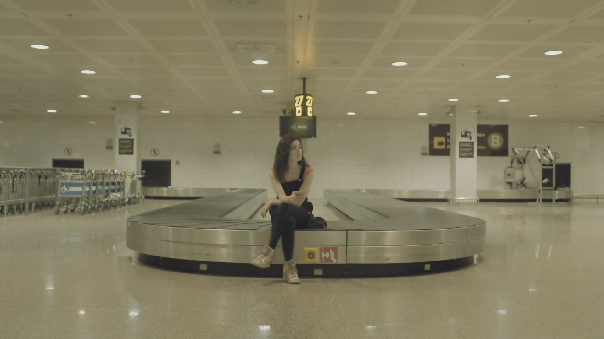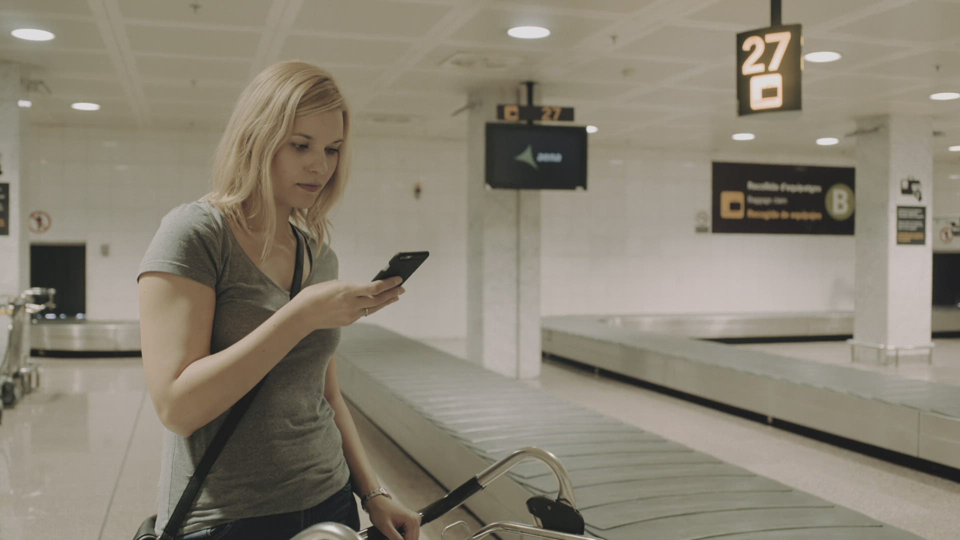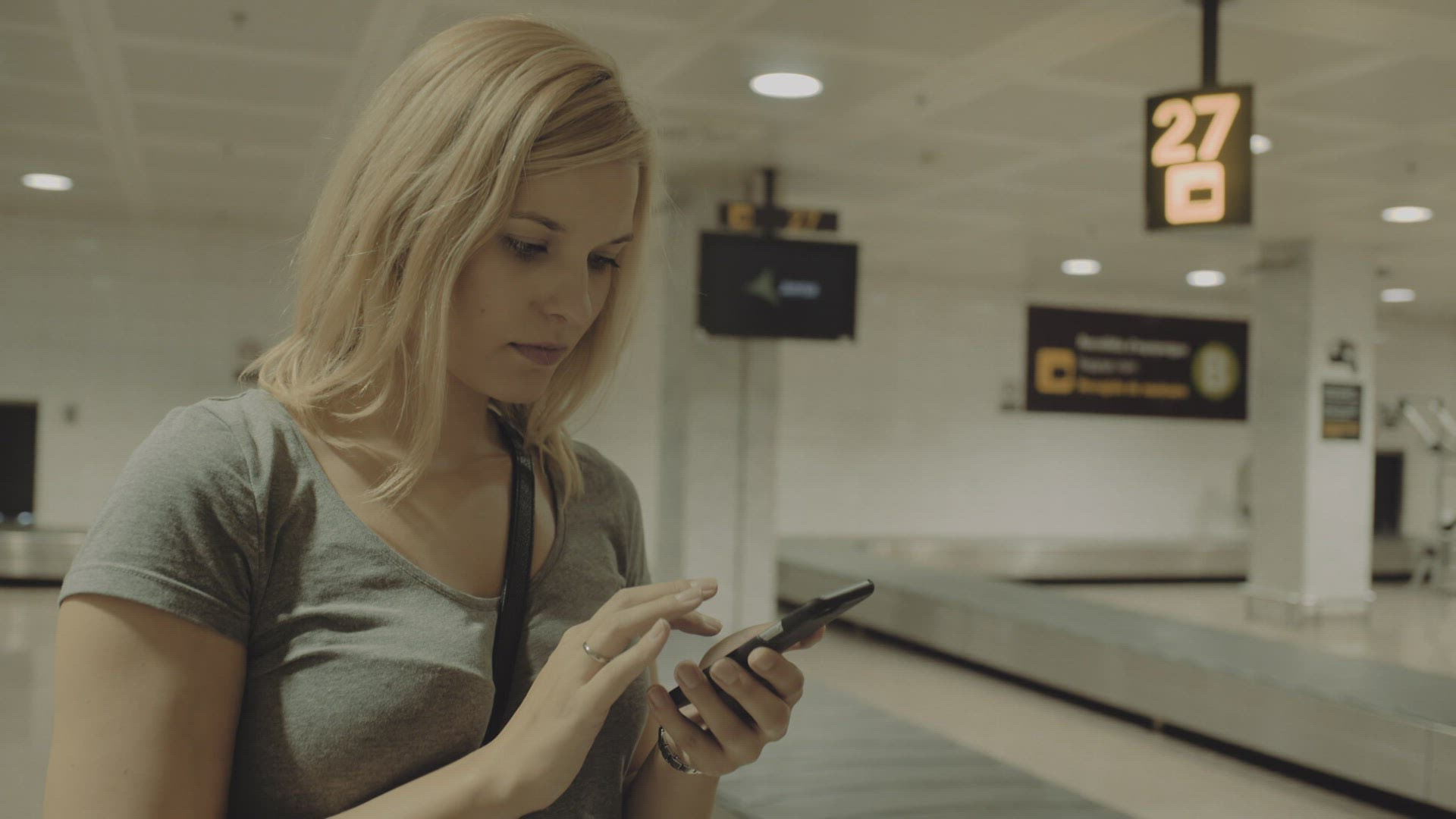 367266 - Woman using pad by the luggage conveyor belt