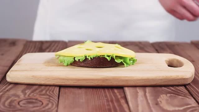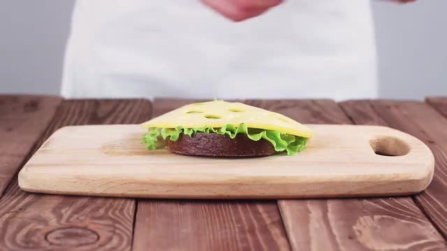 > Female Chef Cut Black Bread on a Cutting Board.