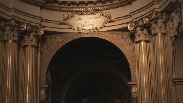 58434 - Tilt shot of an arch in a cathedral in Bologna, Italy.