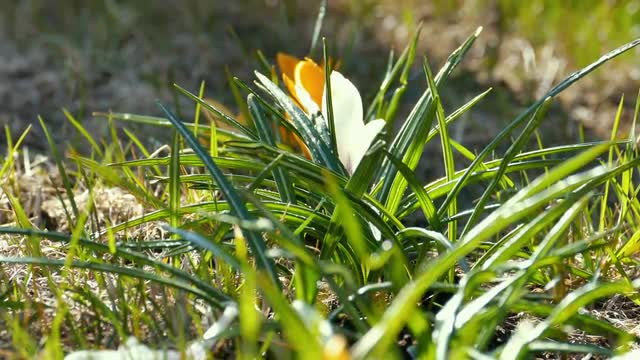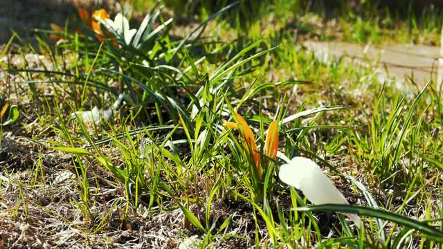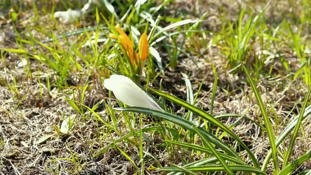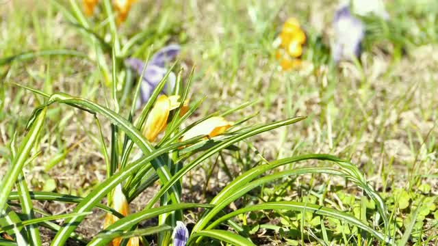 Photographer Making Photos of Snowdrops and Crocus Flowers