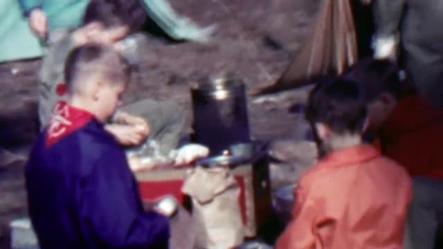 > 1967: Boy scouts outdoor shooting targets with rifle guns.