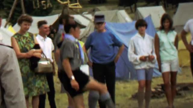 > 1967: Boy scout troop poses group picture lawn green outfit.