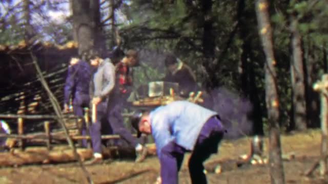 1967: Boy scout troop poses group picture lawn green outfit.