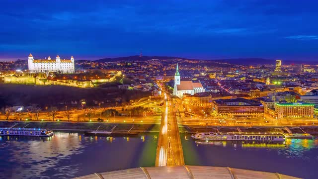 8K UHD Timelapse footage of the night at at Bratislava, Slovensk