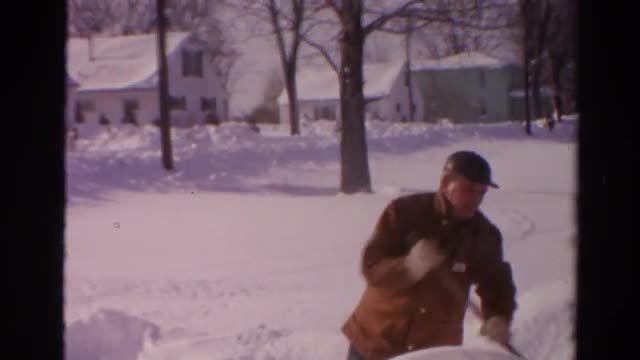 > Man Cleaning Snow From Pavement