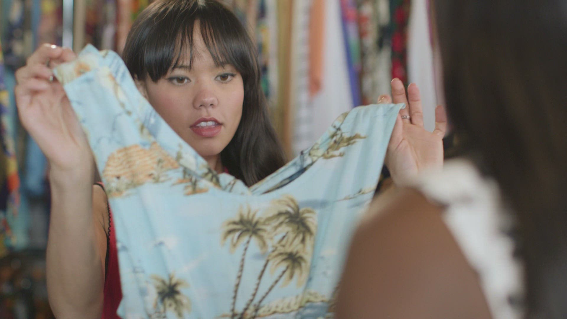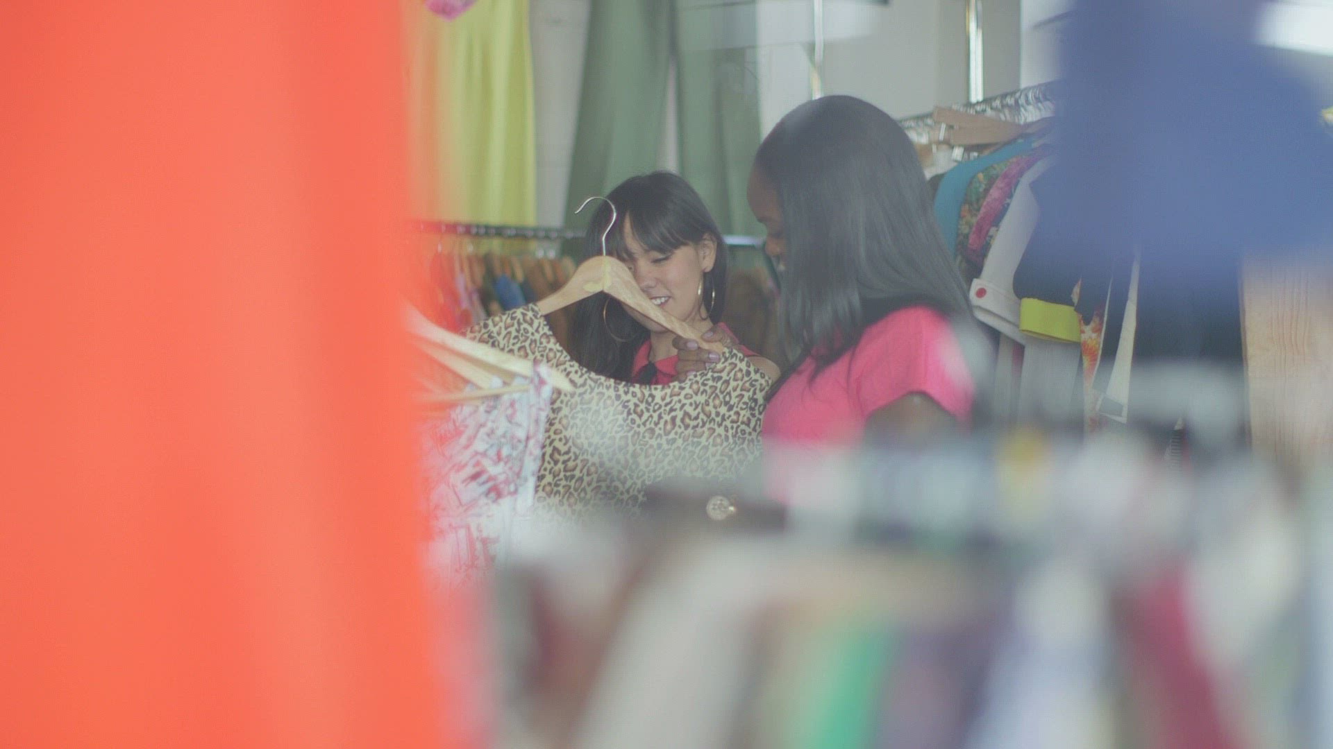 > A cute couple shops and chats on their date