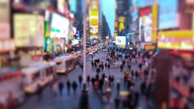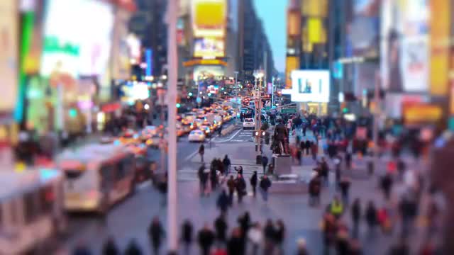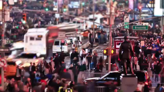 New Years Crowd Forming Tilt Shift in Times Square NYC