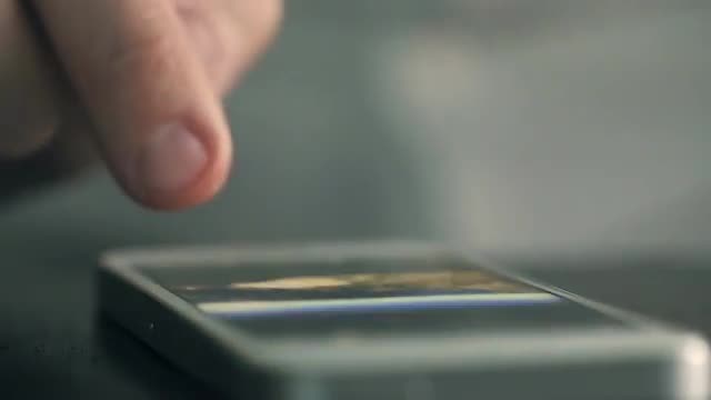 > Mobile Phone on Table Pushed and Swiped by Finger