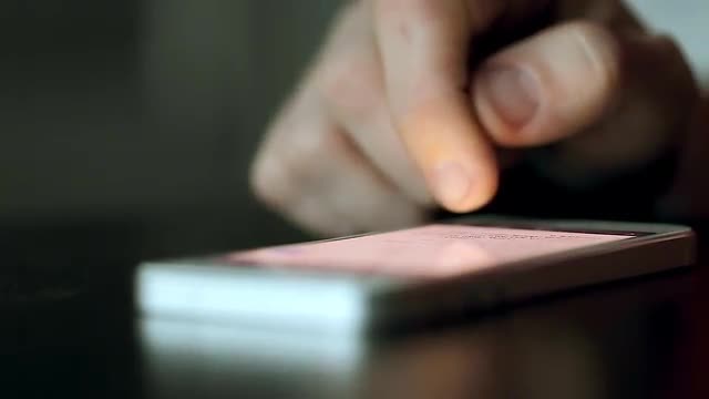 Mobile Phone on Table Pushed and Swiped by Finger