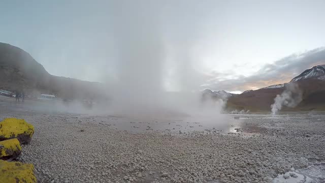 A sulfurous geyser erupts at a geothermal spring at a national park in Iceland.