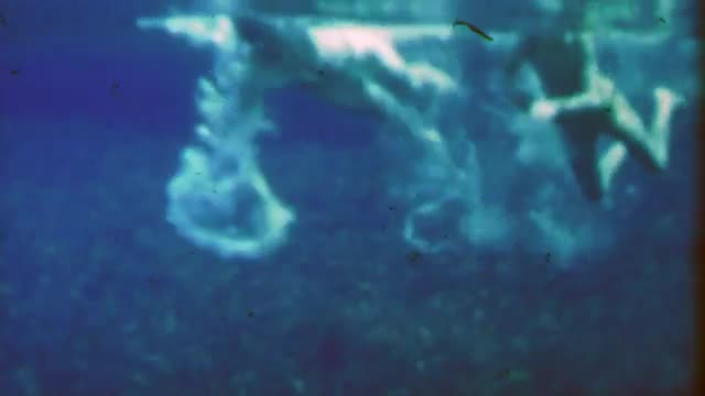 > 1952: Underwater swimming splashing in shallow beach lagoon.