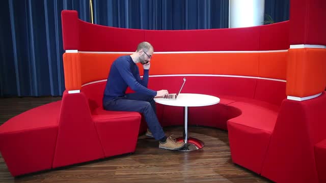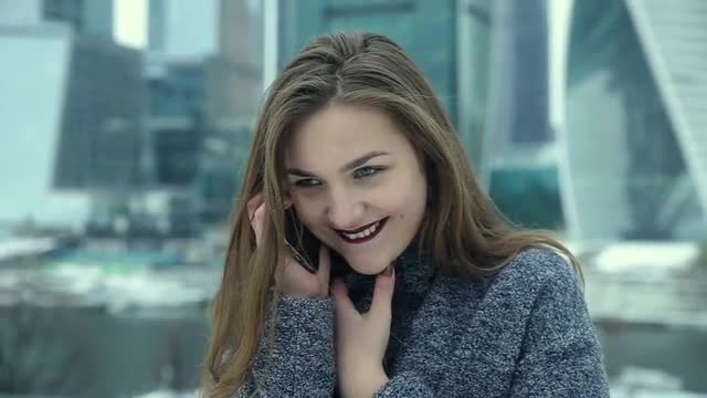 Attractive Japanese young woman talking on the phone in a modern office