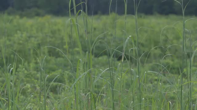 1081342 - Farm scene with sprinkler and bugs at sunrise.