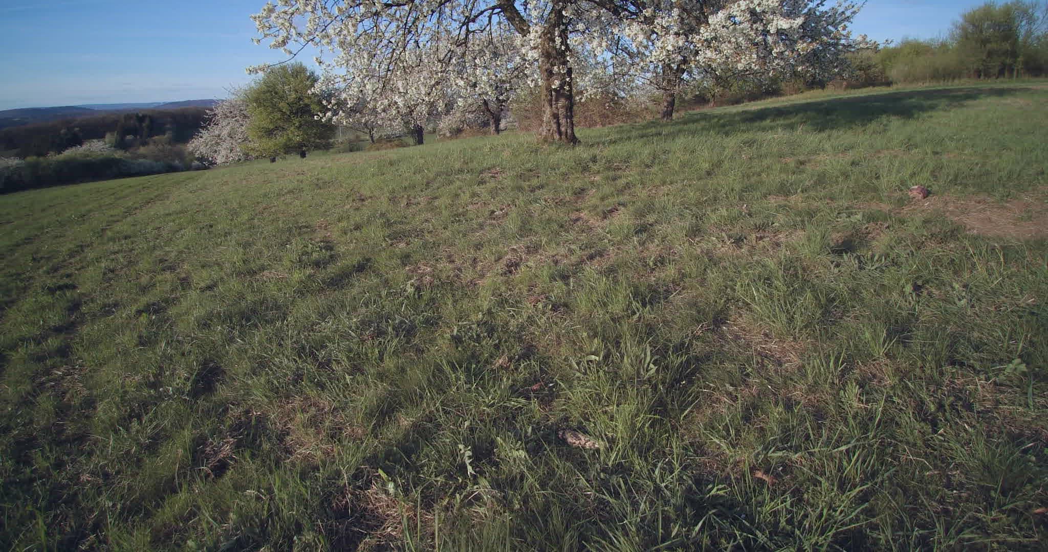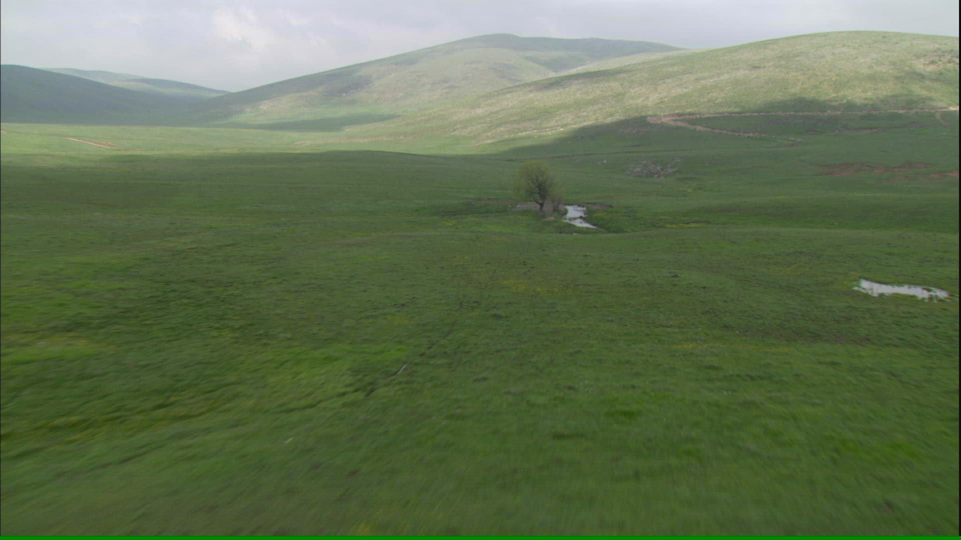 > Camera pans over vast grasslands