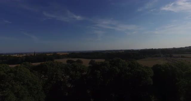 434117 - High panning aerial drone footage of British farming landscape