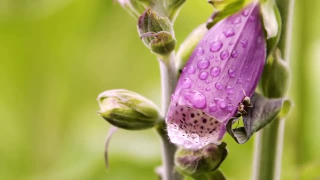 > Purple flowers and bees