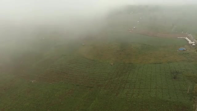 Time lapse of fog flowing on a field during sunrise