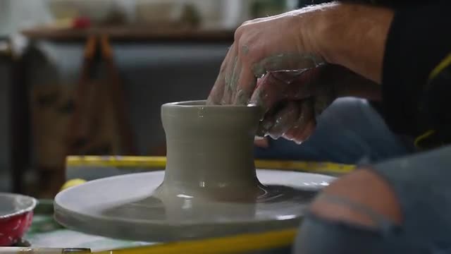 > Pour the clay from the plaster form. Production of plates. 4K