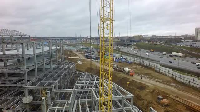 624842 - Cloudscape Over the Building Under Construction With Crane in Old City Time Lapse