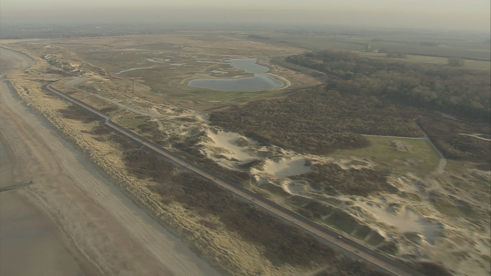 1034724 - Aerial shot of building site with cranes against sunset sky