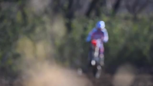 > Motocross racer on dirt track