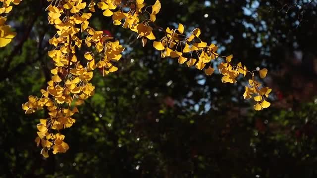 > Autumn leaves fluttering in the wind