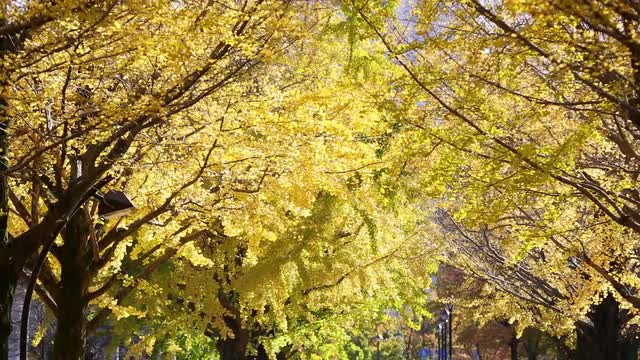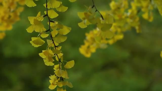 > Autumn leaves fluttering in the wind