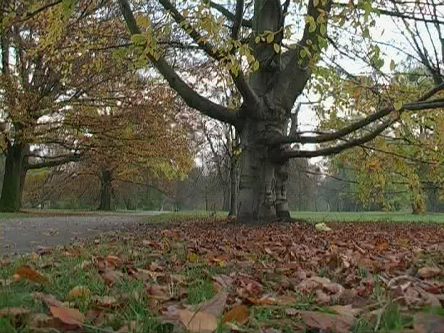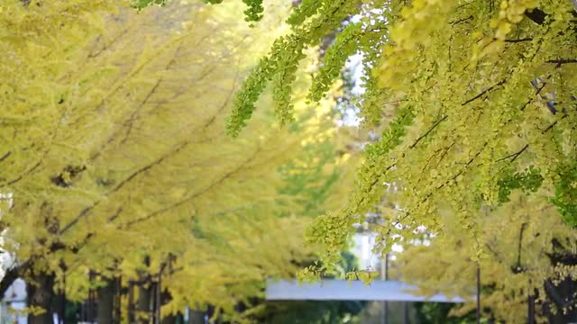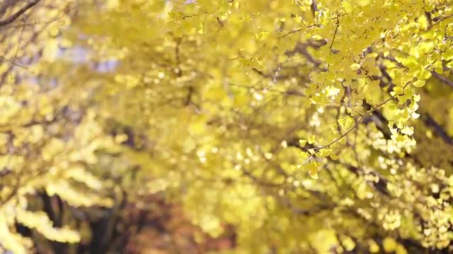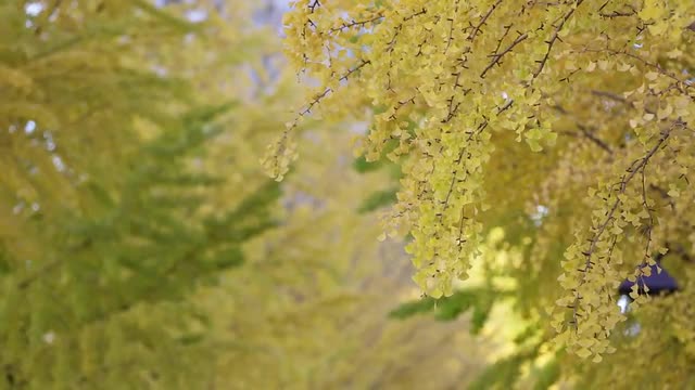 > Autumn leaves fluttering in the wind