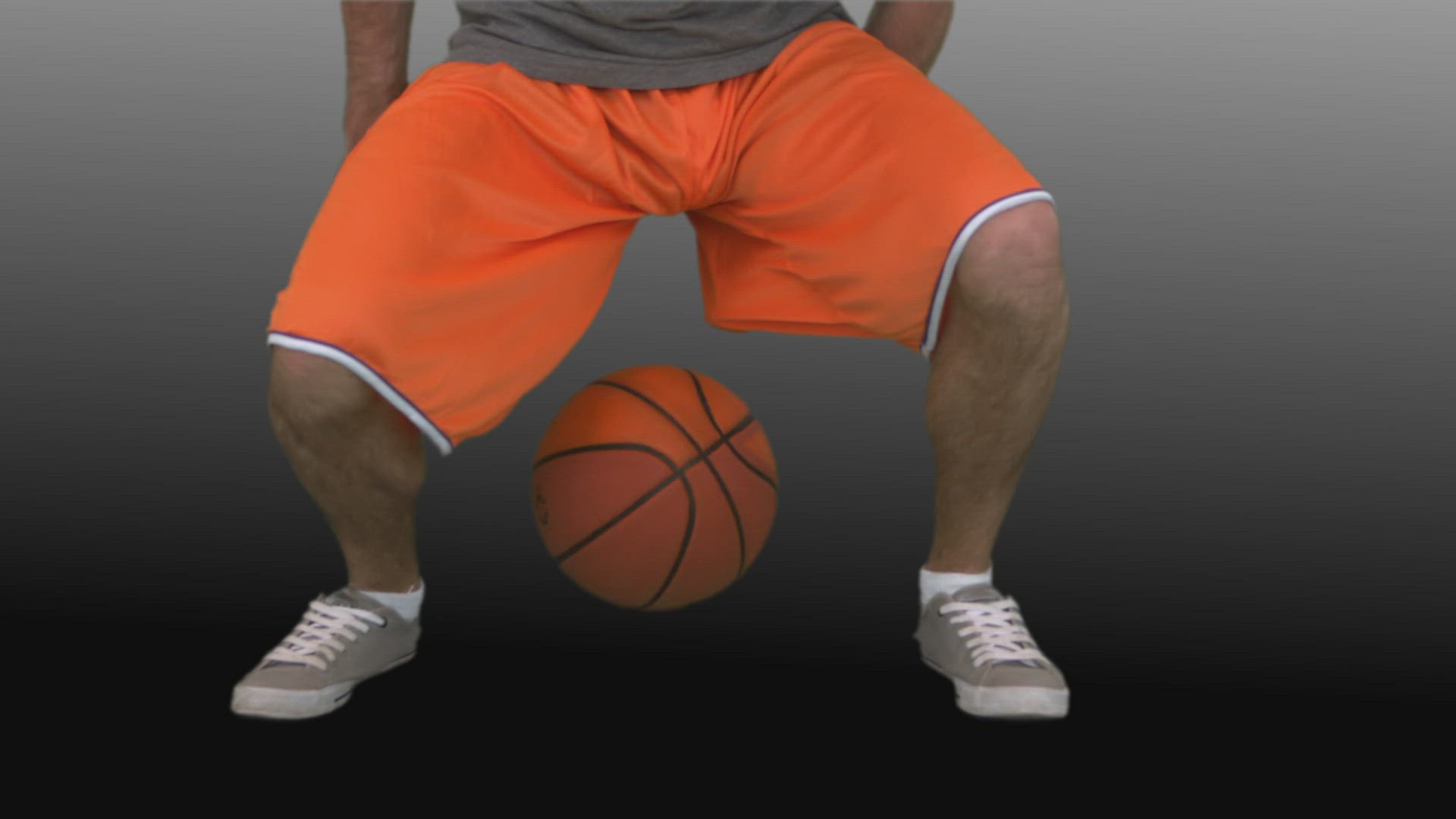 > Slow-motion shot of Caucasian basketball player throwing the ball on a black background