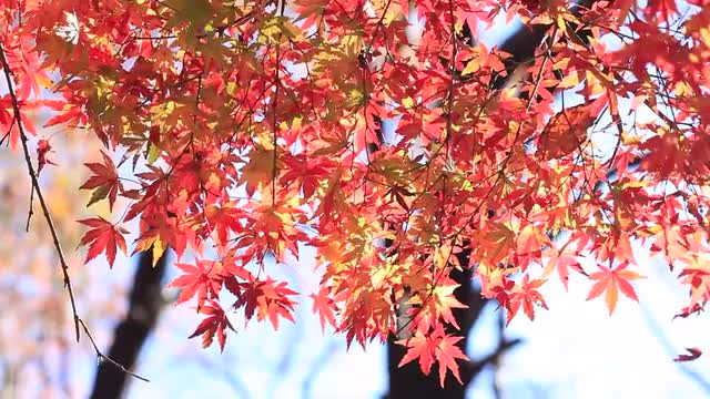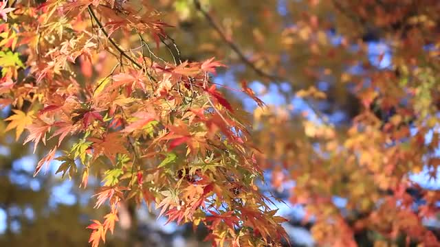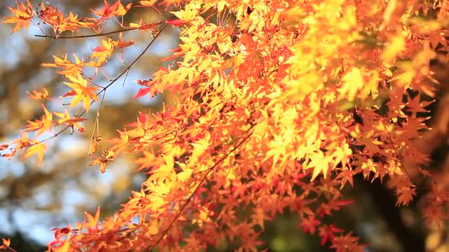 Autumn leaves fluttering in the wind