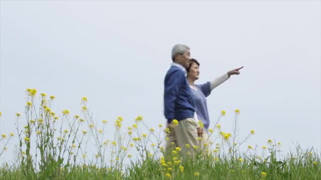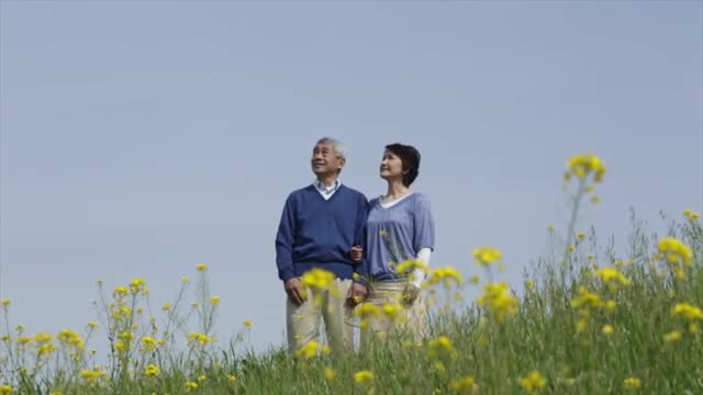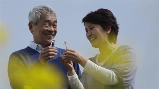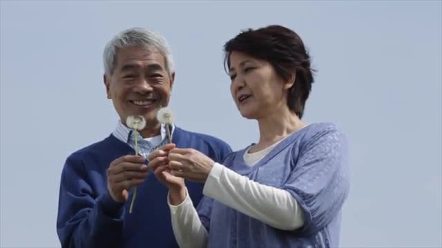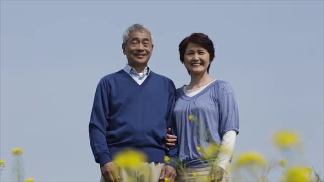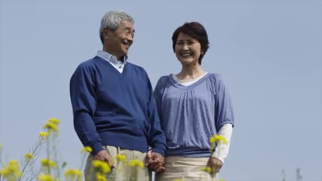 > Smiling Japanese senior couple