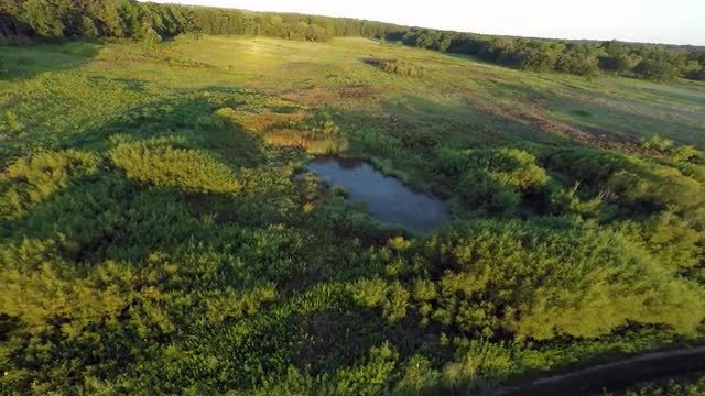 Aerial Reverse Flyover Prairie & Pond