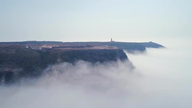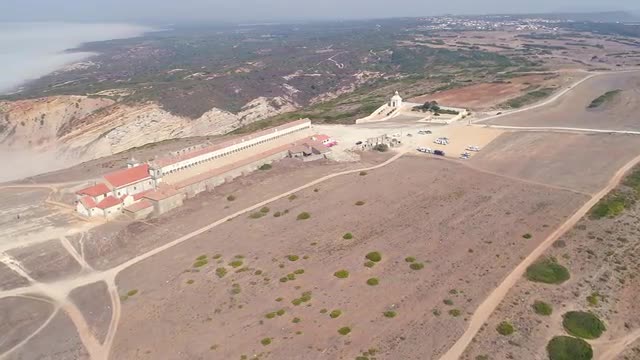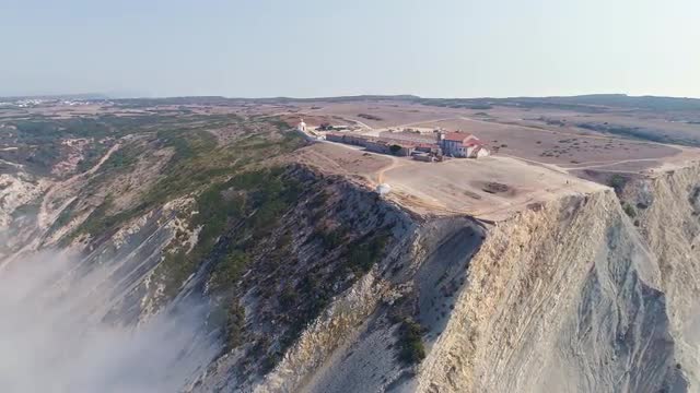 Aerial view over cathedral on countryside in mountains at sunset HD
