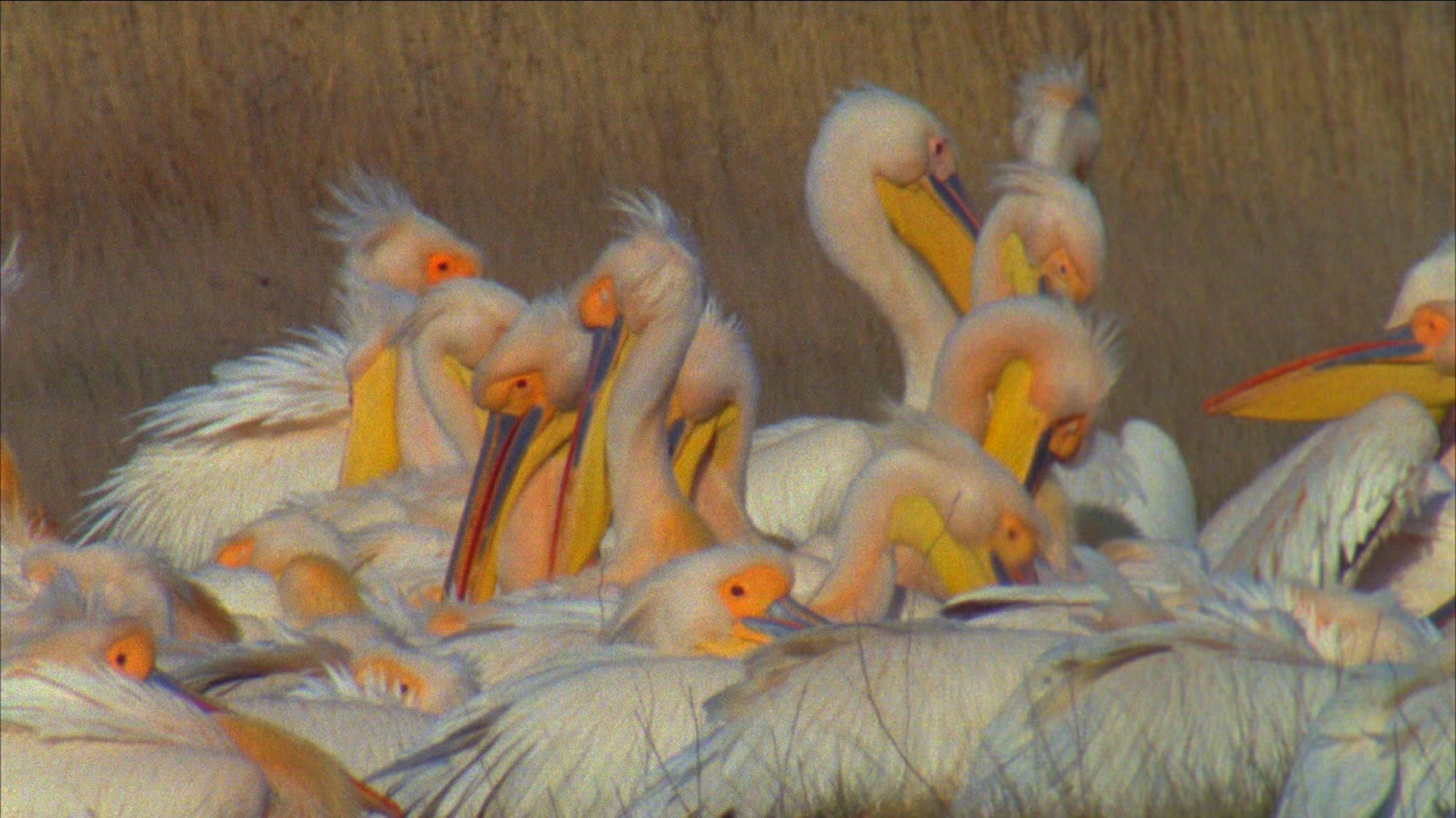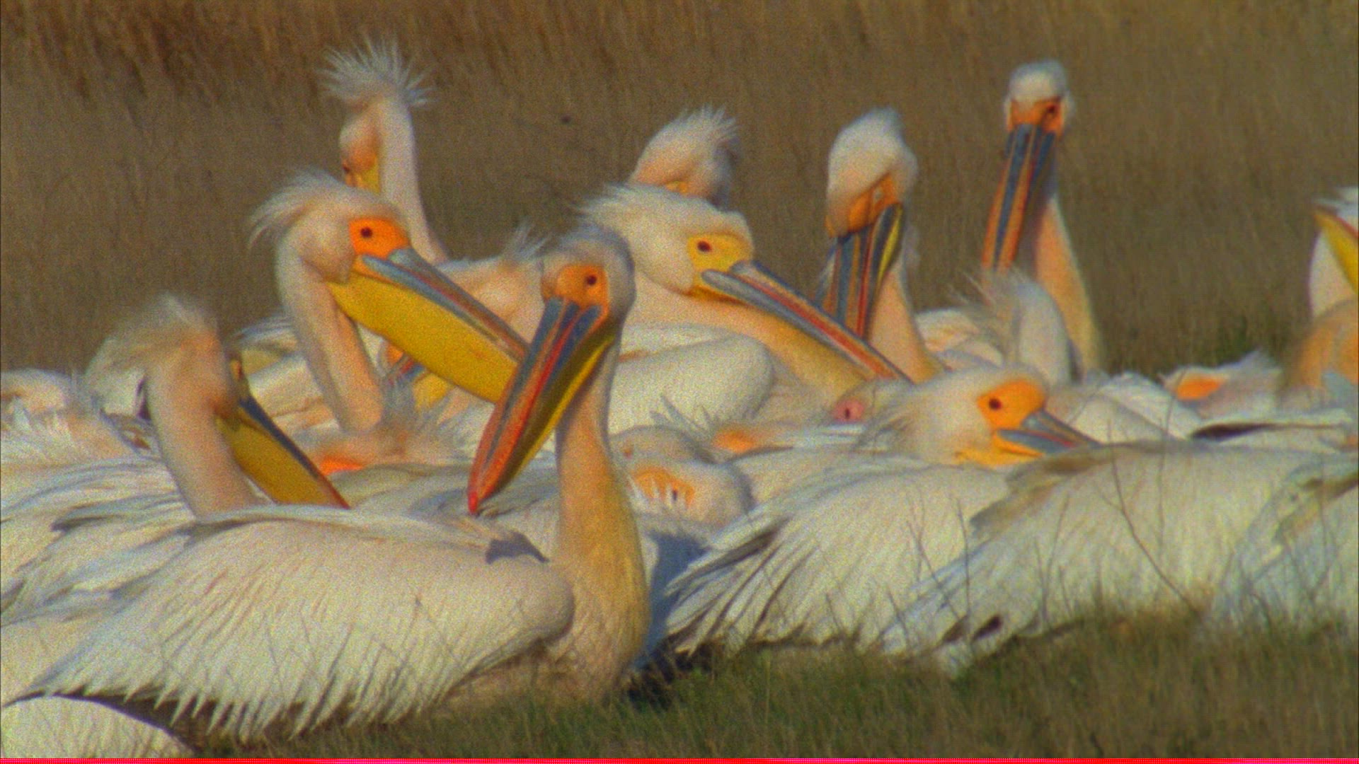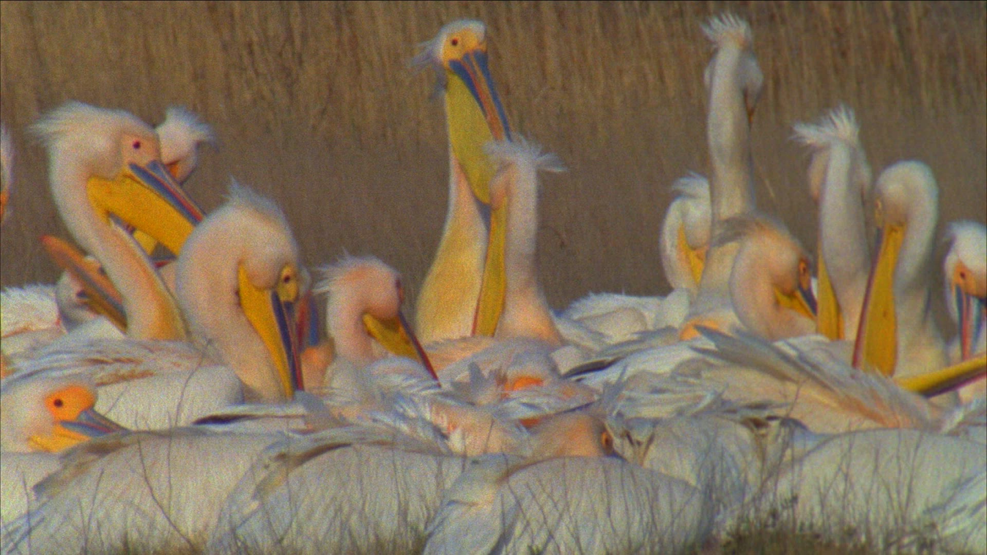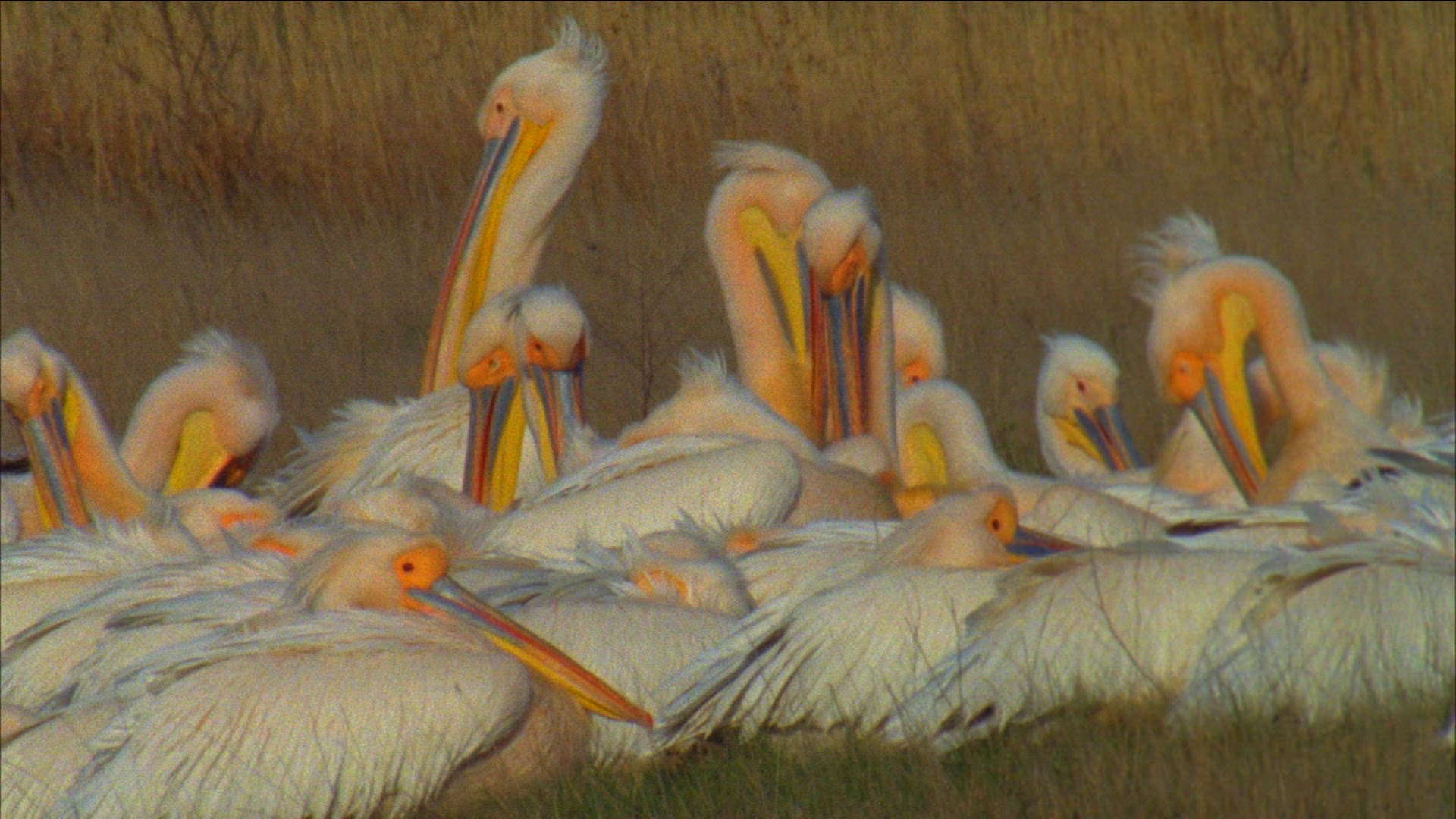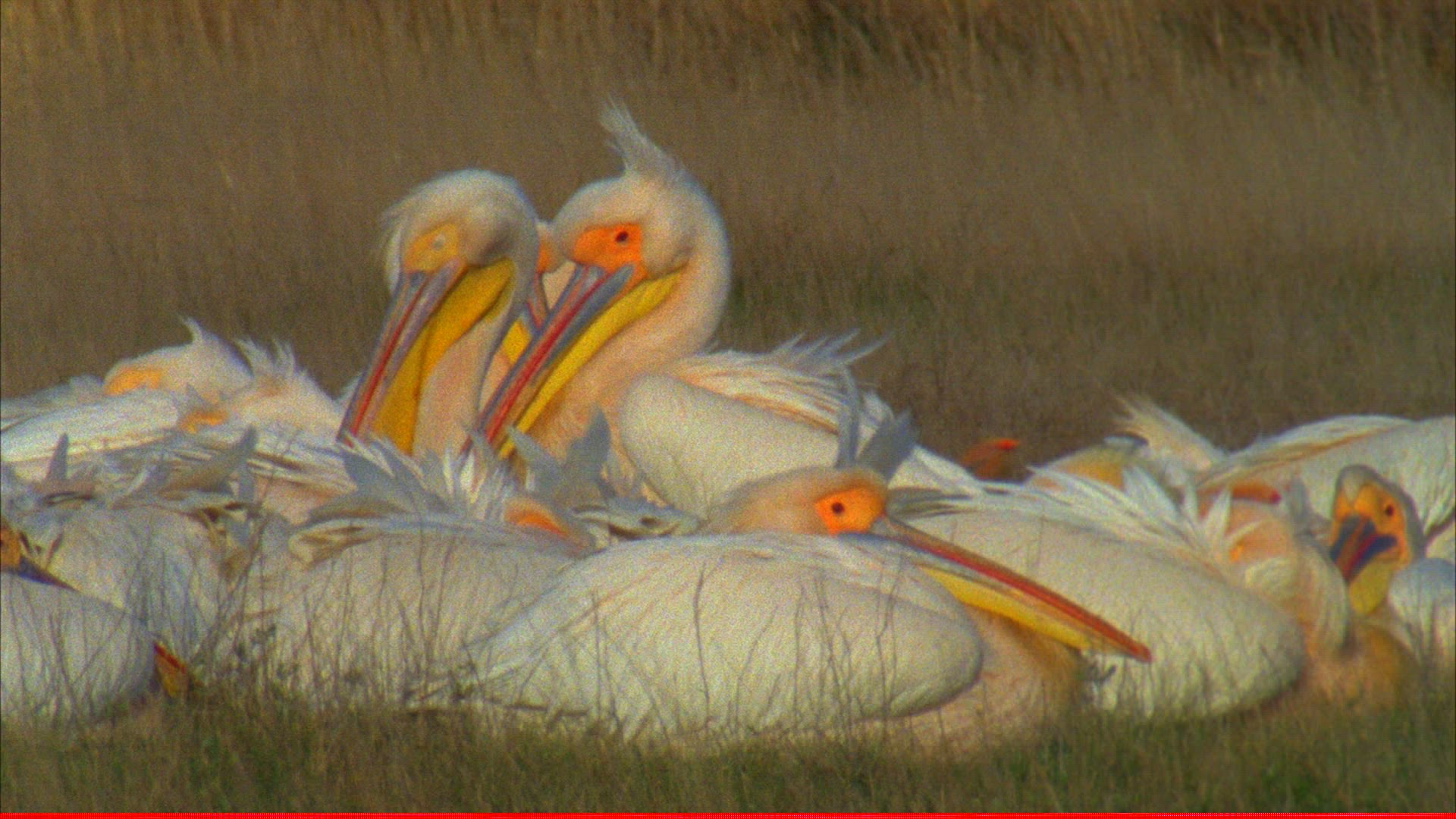 > Pelecanus Onocrotalus, Great White Pelican Through High Grass