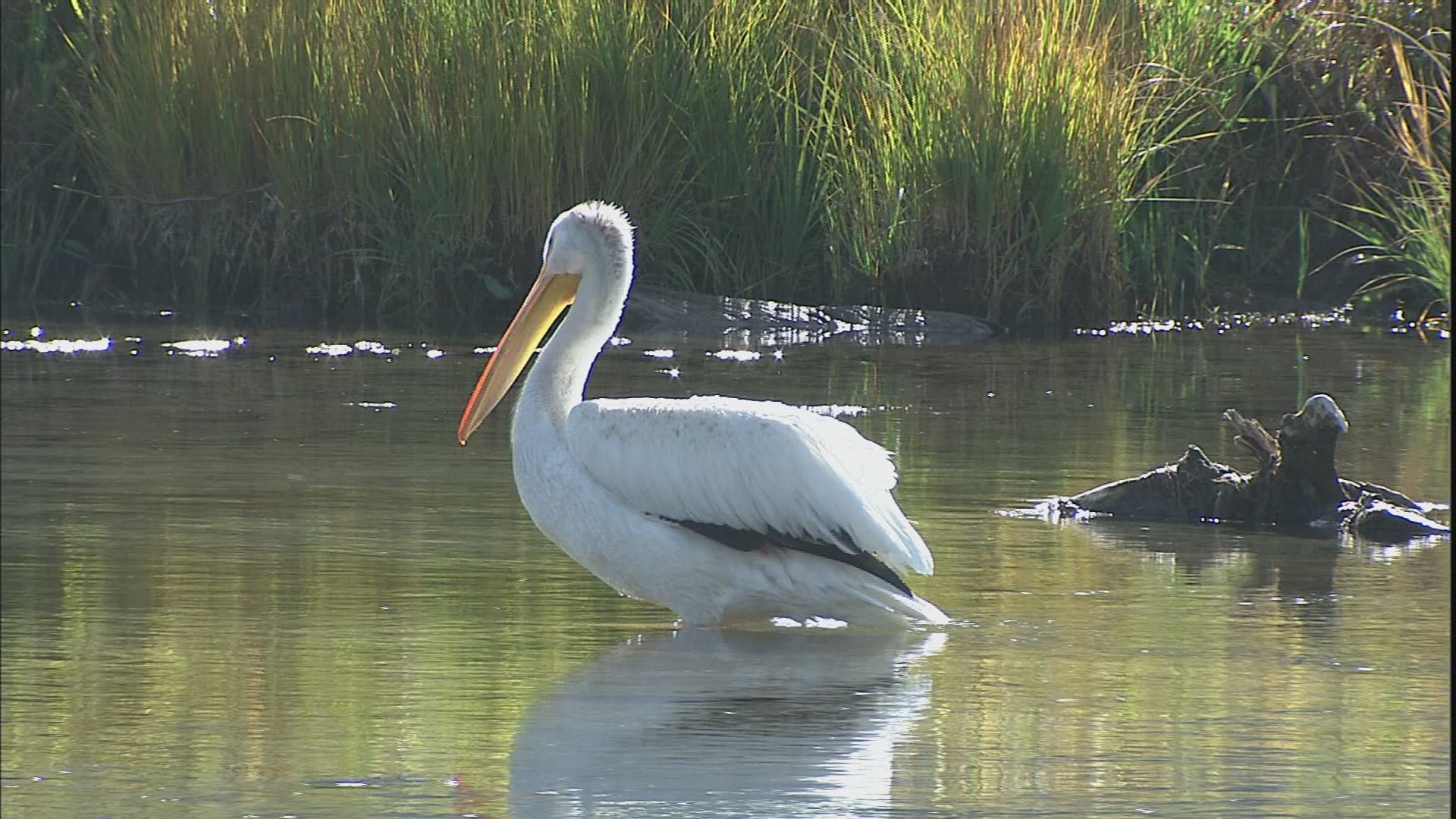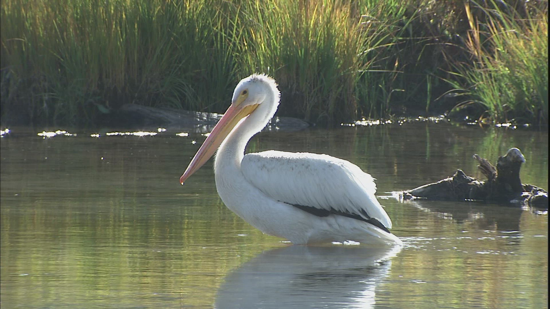 Pelecanus Onocrotalus, Great White Pelican Through High Grass