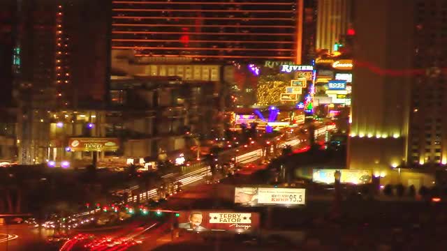 > Static time-lapse shot of Las Vegas at night
