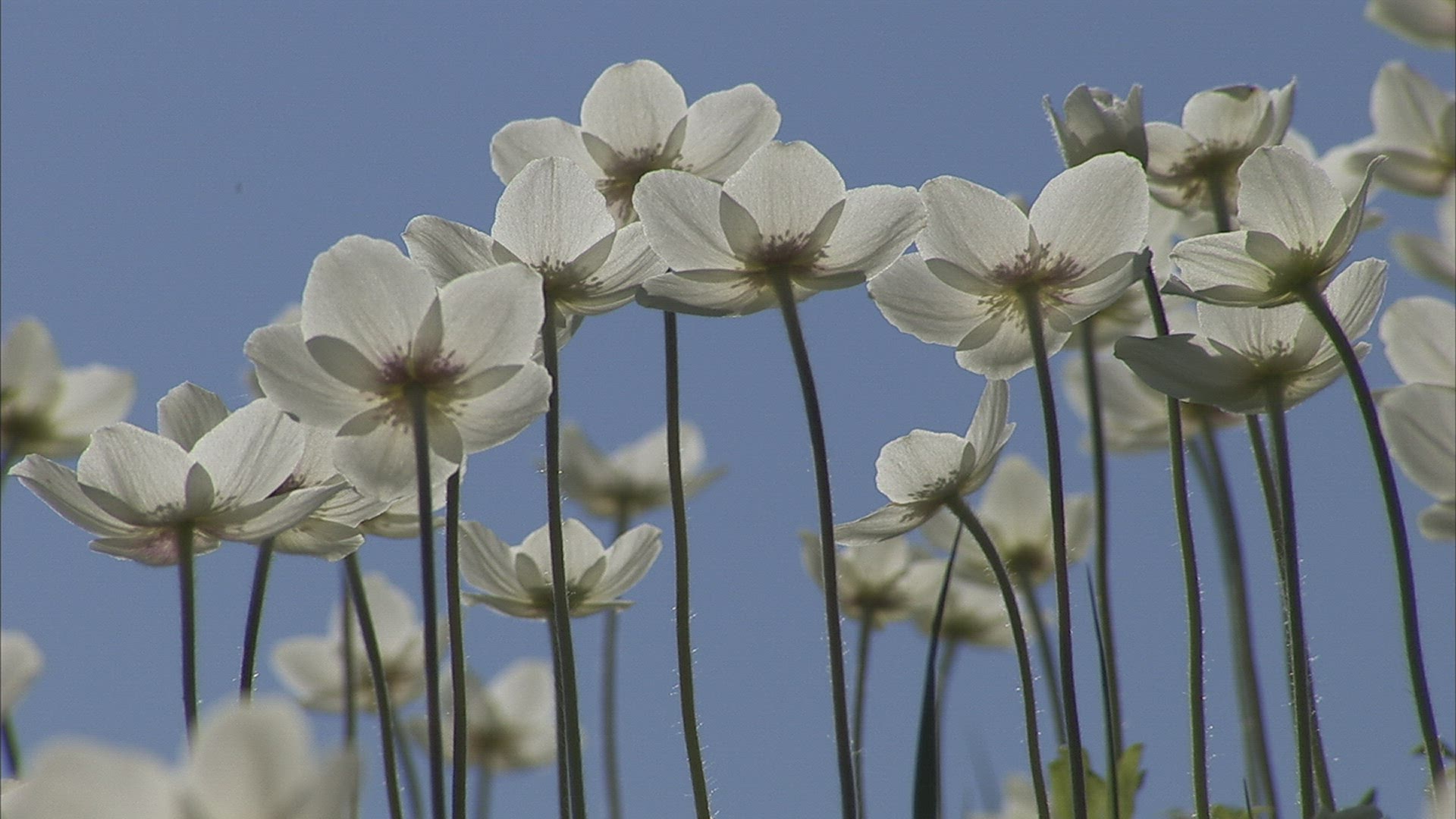 > Flowering Branches of Apple Trees in the Garden Swinging in the Wind