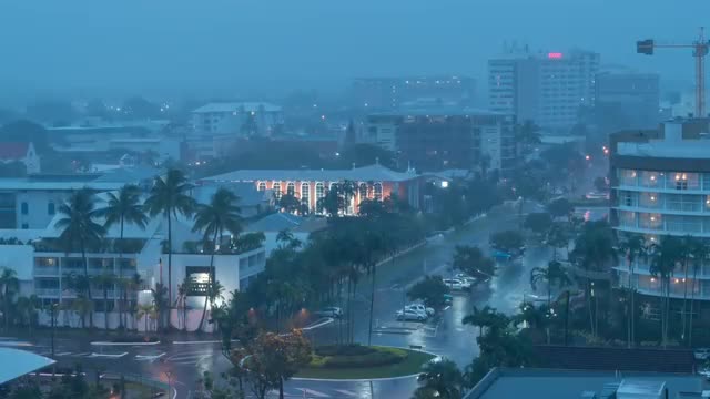 Timelapse of dark clouds rolling across the sky with glimpses of white and sunshine.