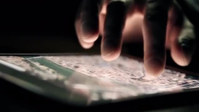 Browsing city map on tablet PC in the dark. Man's hand and screen close-up. (av5582c)
