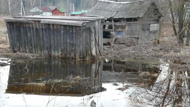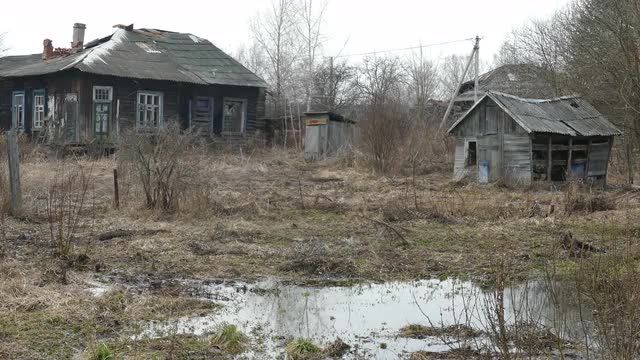 Wooden Orthodox Church is Built Isolatedly by the Forest, Snow on a Roofs of Its Towers, Cross on a Top. Wintry Landscape of a Pirogovo Village, Old Log Church, Scenery of Rural. Winter, Snow, Sunny Frosty Day, Bare Branched Trees, Ukraine, the Landscape is Taken With a Camera Motion, Outdoors