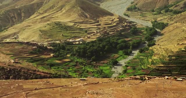 618507 - View of dry river and terrace fields in the mountainous region of north Morocco, Africa
