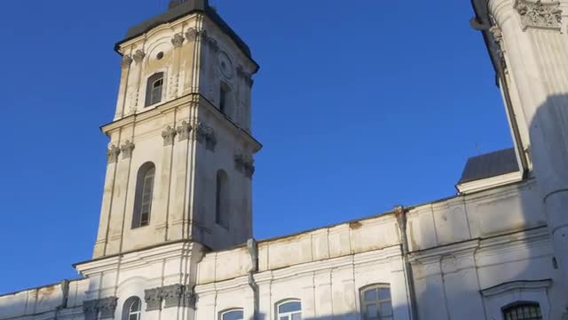 Barefoot Carmelites Monastery in Berdichev, Camera Hides Behind a Wall, Catholic Mendicant Order, Discalced Carmelites, Architecture Complex With Protective Walls, Towers in a Barocco Style, Vintage Ancient Buildings, Ukraine, Sunny Day, Blue Sky, Outdoors