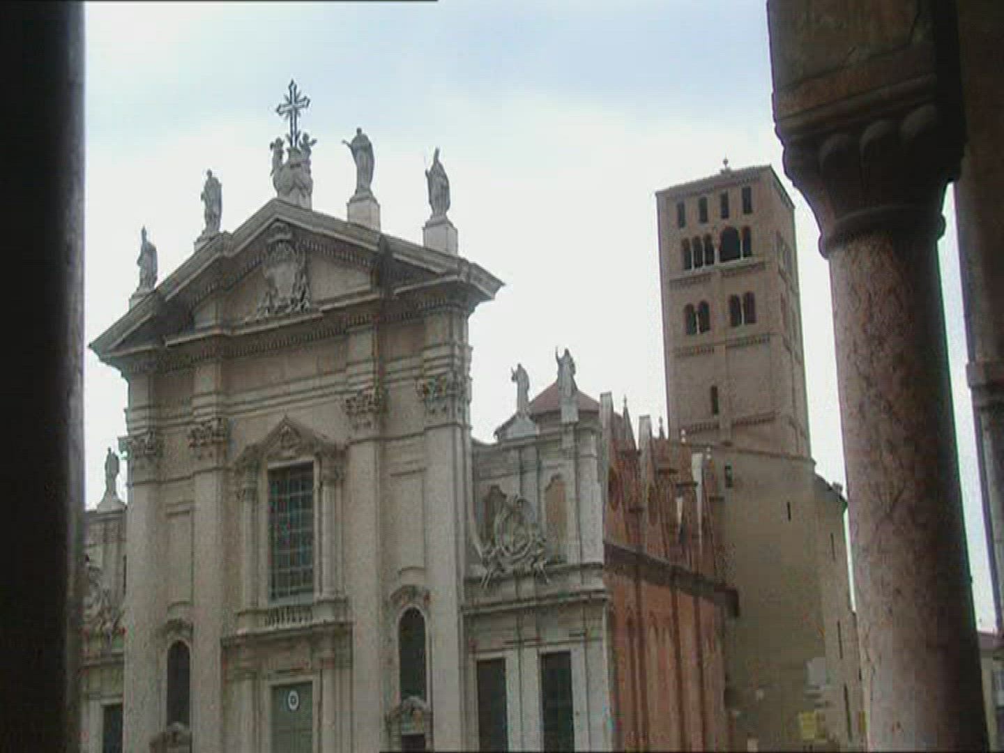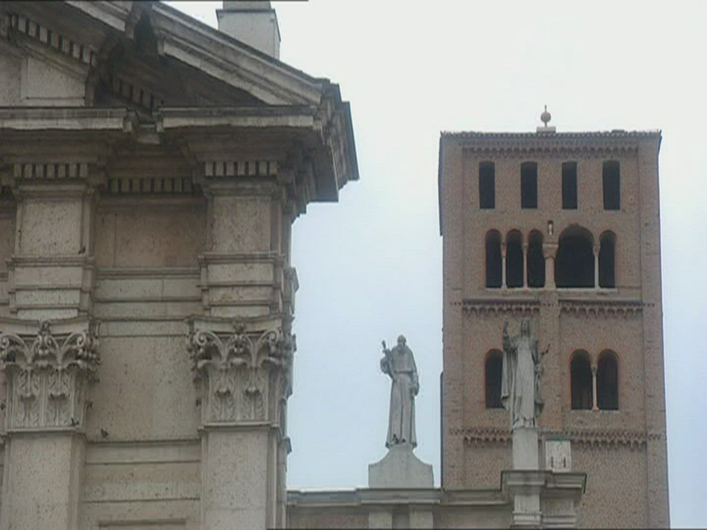 > Tilt up shot of Jacob's Ladder sculpture on a church in Bath, England.