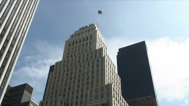 534994 - Christmas tree near office building, pan up