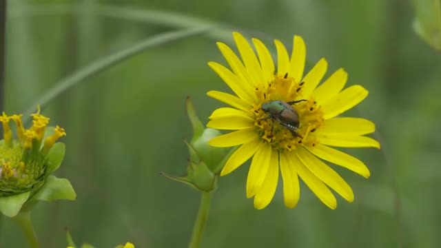 Japanese Beetles on Green Leaves