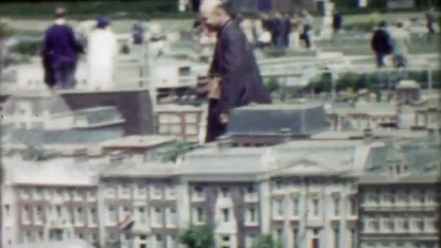 1962: Man enjoying realistic mini model wealthy home replica buildings. COPENHAGEN, DENMARK