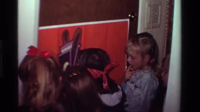 1964: Pin the tail on the donkey kids birthday party game. CONCORD, NEW HAMPSHIRE
